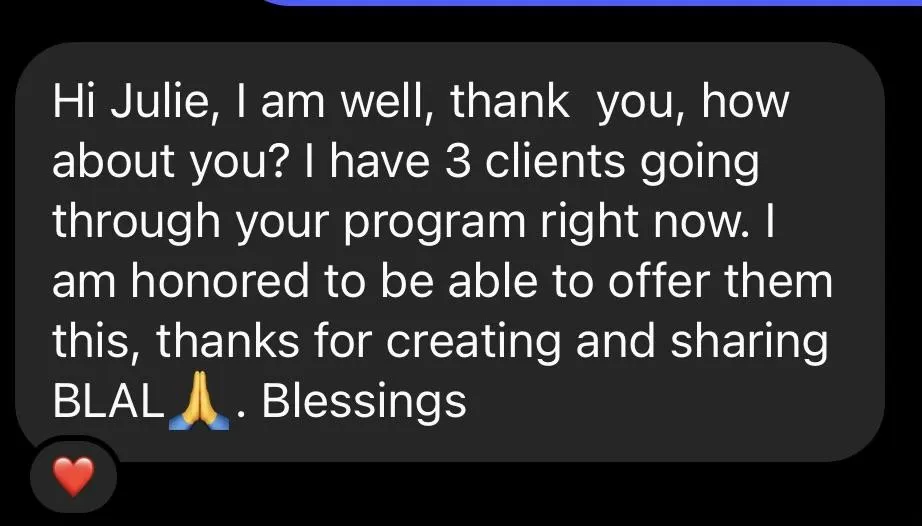 If you are considering taking this training, don't hesitate! So many people need what she offers and she teaches it in a way that feels doable for anyone."