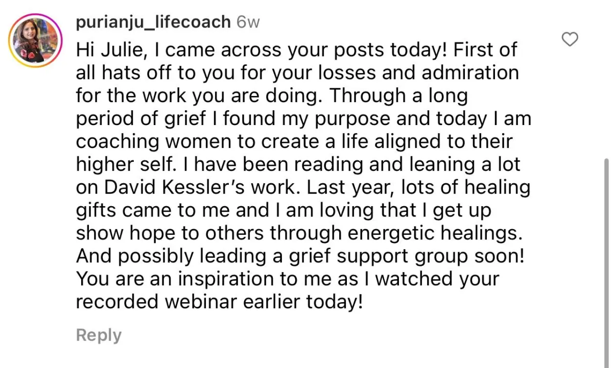 Over the last 5+ years as a grief coach, Julie has been able to: